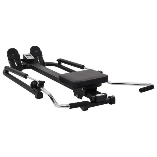 Zwarte roeimachine met hydraulische weerstand en digitaal display