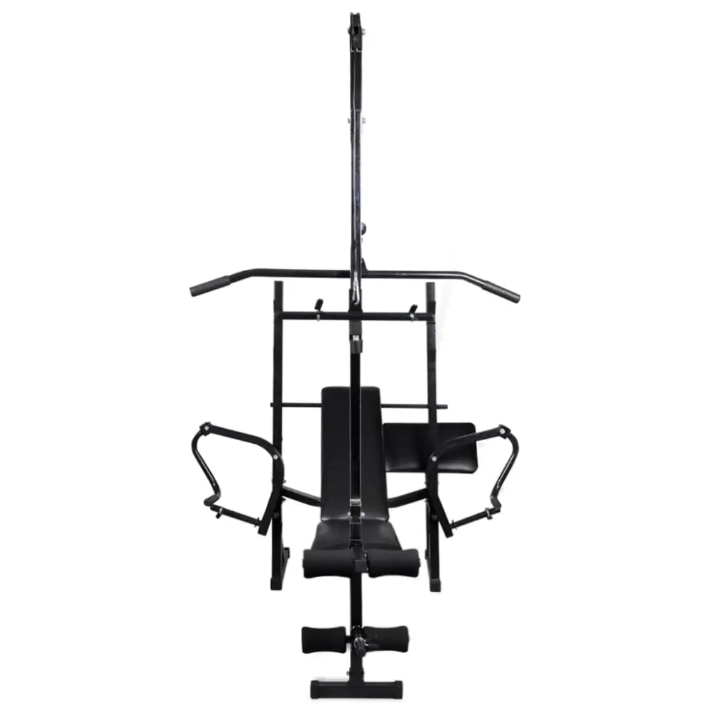 - Breed scala aan trainingen: met bankdrukken kun je de arm- en borstspieren trainen. Het curl- en vlinderstation versterken de schouders en armen, terwijl de been-curl de onder- en bovenbenen traint. Het brede scala aan trainingscombinaties en oefeningen biedt voor een effectieve training van het hele lichaam.